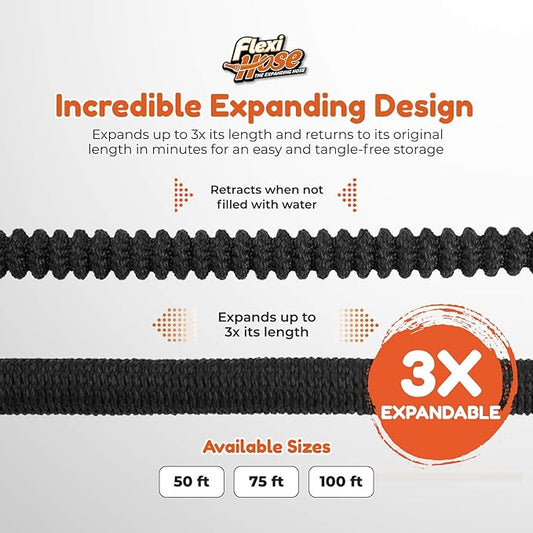 Flexi Hose Lightweight Expandable Garden Hose, No-Kink Flexibility, 3/4 Inch Solid Brass Fittings and Double Latex Core (75 FT, Black)