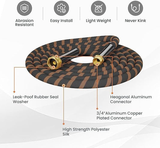 Giraffe Tools Garden Hose 25FT Lightweight Lay Flat Water Hose Kink Free Flexible Hose with 9 Spray Function Nozzle, Black