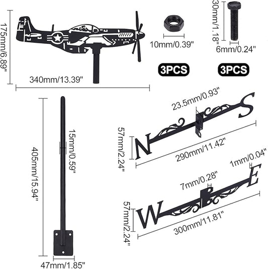 SUPERDANT Weathervane Fighter Ornament Wind Vane Weathercock Metal Weather Vane for Garden Decor Farmhouse Decorative Outdoor Garden Wind Measuring Tool