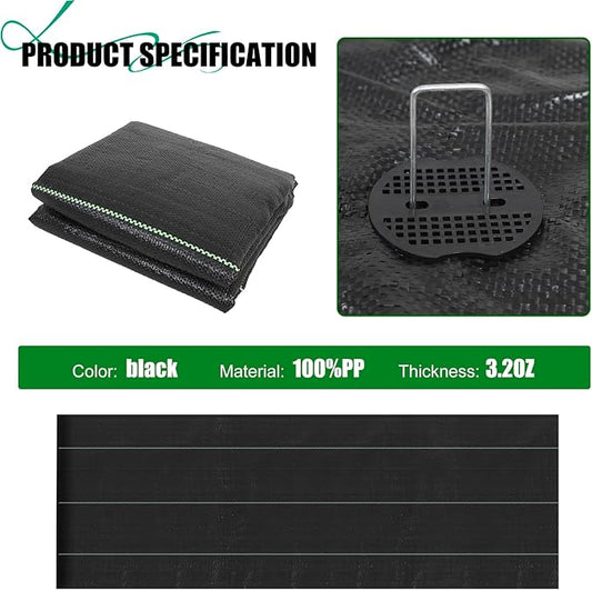 3FT x 50FT Weed Barrier Landscape Fabric Heavy Duty, 3.2oz Premium Gardening Weed Control Mat with 20 U-Shaped Securing Pegs, Ground Cover for Garden Beds, Farming, Underlayment, Commercial Driveway