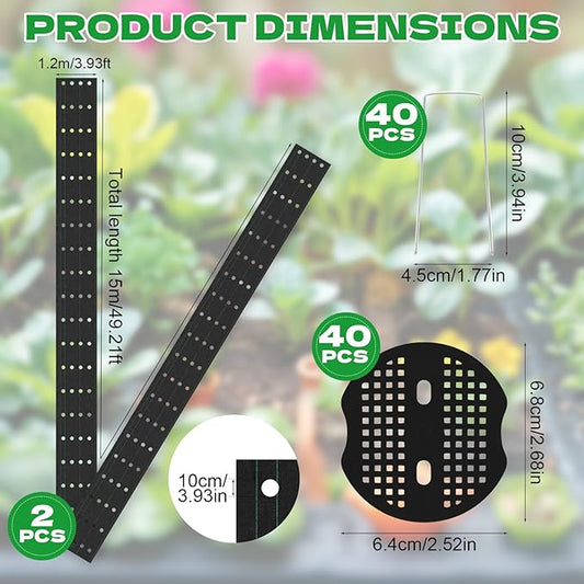 4 x 50ft Weed Barrier Fabric Heavy Duty Landscape Weed Blocker with 80 Holes, Large Weed Block Gardening Ground Cover Mat Weed Control Cloth with 10 U-Shaped Stakes and Gaskets, Black (2pcs,4x50ft)