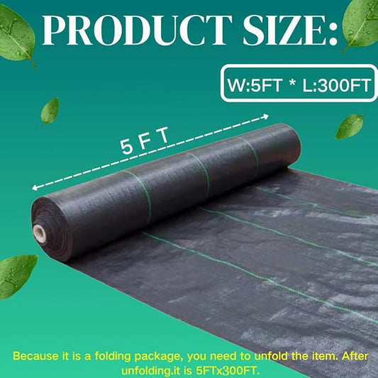 Weed Barrier Fabric Heavy Duty 5FT x 300FT - Premium Landscape Fabric for Weed Control, High Permeability for Agriculture, Gardening, Construction & Driveways