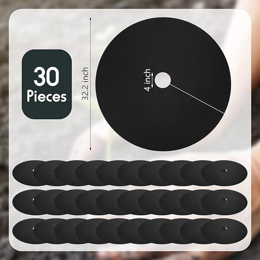 Macarrie 30 Pieces Weed Barrier Mats Non Woven Tree Mulch Ring Thickened Tree Protectors Mat Black Mulch Reusable Tree Rings Landscaping Plant Cover Round Anti Grass Gardening Fabric Cover (32.2 Inch)