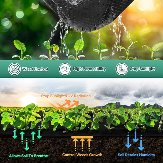 6.5ft x 300ft & 3oz Premium Garden Weed Barrier Landscape Fabric, Durable & Heavy-Duty Weed Block Gardening Mat, Easy Setup & Superior Weed Control, Eco-Friendly & Convenient Design