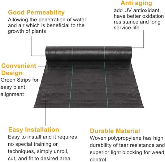 3x100ft 3.2OZ, Weed Barrier Landscape Fabric Heavy Duty, Woven Weed Control Fabric, High Permeability Good for Flower Bed, Geotextile Fabric Underlayment, Driveway (6ft*300ft)