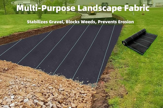 Driveway & Landscape Fabric 13ftx60ft Black Plastic, Heavy Duty Geotextile Ground Cover Under Gravel for Driveway Underlayment, Weed Control Garden Barrier Cloth