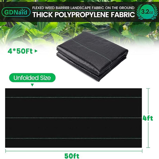 4ftx50ft Weed Barrier Landscape Fabric Heavy Duty, Premium 3.2oz Weed Barrier Fabric Weed Tarp, Weed Fabric, Garden Landscaping Fabric