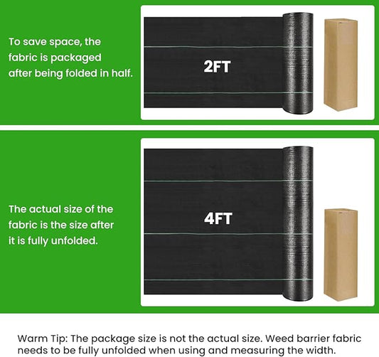 3ftx180ft Weed Barrier Landscape Fabric Heavy Duty, 3.2oz Weed Barrier Garden Fabric, Easy Setup Woven Landscaping Fabric