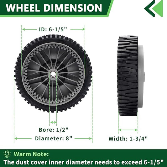2 Pack Lawn Mower Drive Wheels Replaces Craftsman Poulan Husqvarna HOP AYP 581009202 193912X460 8"X1-3/4"