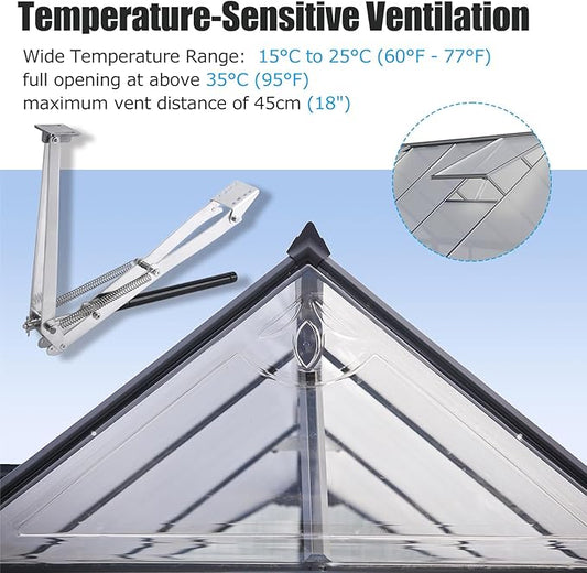 Greenhouse Auto Vent Opener Automatic Roof Vent Opener Greenhouse Solar Powered Greenhouse Accessories Heat Sensitive Ventilation Kit Gardening Tools, Lifts 15lbs for Hothouse Cold Frame