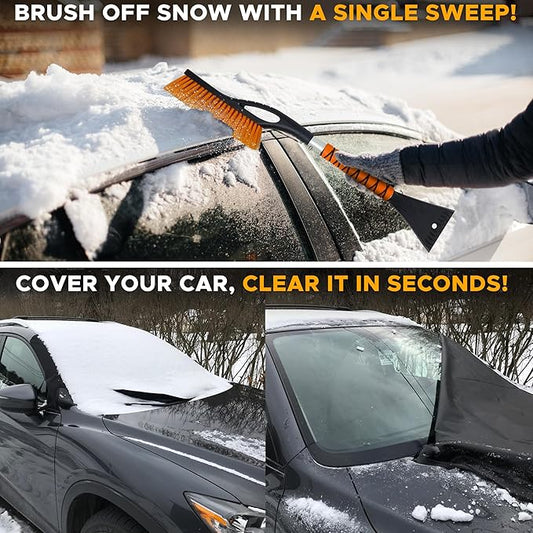 EcoNour Car Windshield Cover for Ice and Snow (69"x42") | Snow Brush and Ice Scrapers for Car (1 Pack) with Scratch Free Bristle Head | Winter Car Kit for Cars, Trucks, SUVs