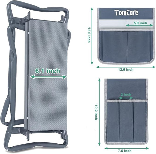 TomCare Garden Kneeler and Seat 10.64” Wider Larger Soft Kneeling Pad Garden Bench with 2 Large Tool Pouches Heavy Duty Garden Stool Foldable Tools Gardening Gifts for Women Men Gardeners