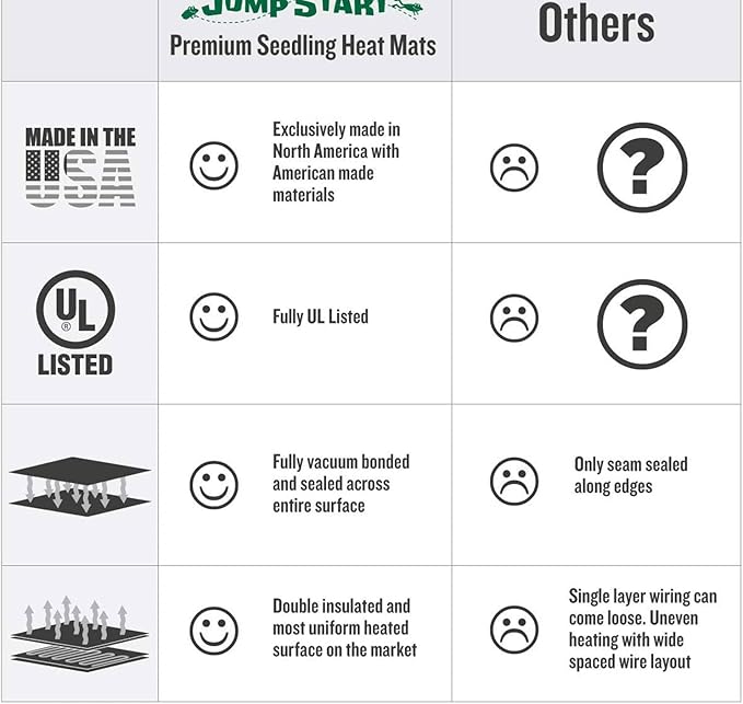- 6 foot power cord and waterproof construction with lighting, watering, and planting information printed on mat for easy use