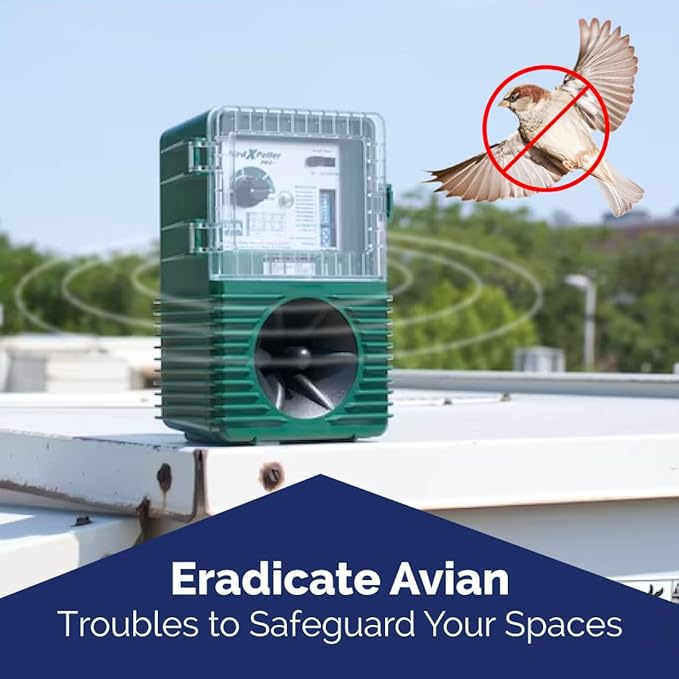 - Wide Coverage: Our bird-defying device is weather-resistant, making it ideal for outdoor use with up to 1 acre of coverage. Also, this device should be placed high up near damaged areas like vents and chimneys to ensure protection from further damage.