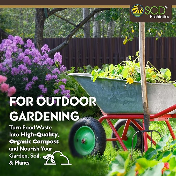 - SCD Probiotics All Seasons Dry Bokashi – A chemical free way to kickstart the composting process, seal in more nutrients & reduce odor. Great for both the outdoor composter & indoor kitchen compost bin. Comes in a 1 gallon (2.2 lbs) resealable bag.