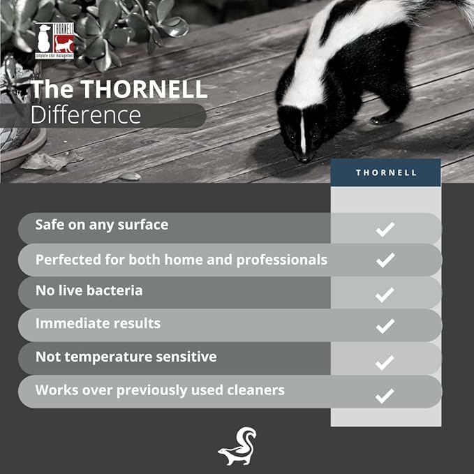 - Safe For Small Pets & Children: No need to fear! Pets and children can safely be around areas treated with Skunk-Off skunk odor remover for house immediately after use. All Thornell products are safe for use on any surface.