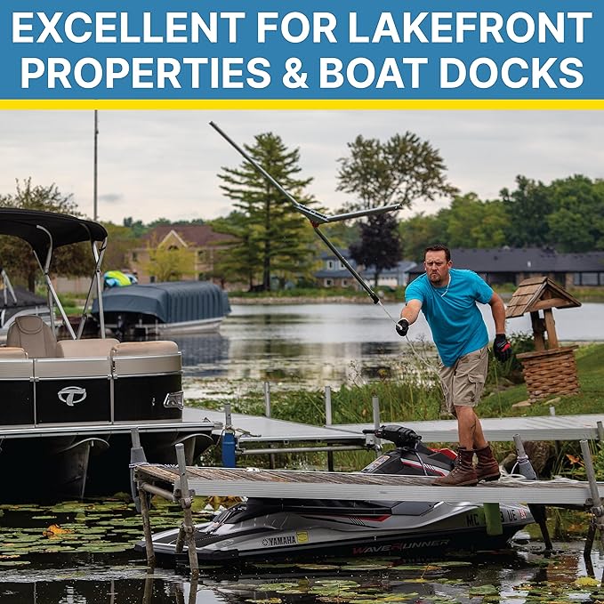 - Reduces Timely Maintenance: When used regularly, the Weed Razer will keep aquatic weeds in check. Maintain your dock, shoreline, and up to 30 feet into the waterbody with the included 25-foot rope.