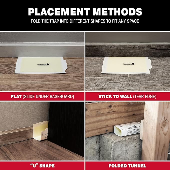 - HOME & FAMILY SAFE: Designed to help you keep your family protected and safe from unwanted pests in your home, Catchmaster's glue traps are intuitive, secure and effective. Our rodent and insect killer traps are easy to place, simply put the insect trap against walls & along pathways to catch unwanted pests and insects. Our products are tested under the harshest field conditions to ensure maximum reliability for any level of pest control expert.