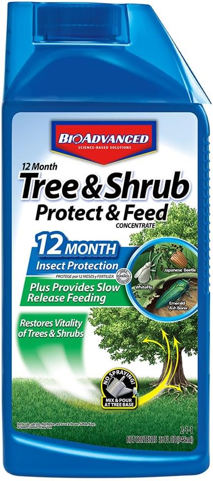 - 12 MONTH PROTECTION: With just one application, BioAdvanced Tree and Shrub Protect and Feed kills listed insects while preventing new infestations for up to a year