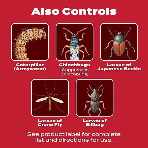 - This grub killer also controls caterpillars (armyworm), chinchbugs, May/June beetles, and more (as listed), and can help control Japanese beetle infestations when applied annually