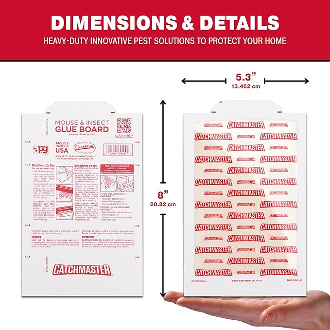 - NO MESS CONVENIENCE: The bulk pack of disposable sticky traps for mice and rats is made with professional strength adhesive and can fold into a tunnel shape for use in tight or dusty areas. The sticky mouse trap can be used as a standalone trap or as an insert for other Catchmaster traps.