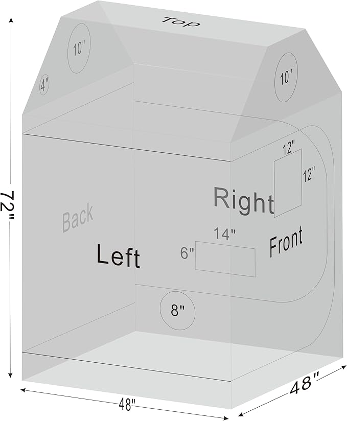 - Superior Materials and Sturdy Structure---- The grow tent is made of tear proof 600D canvas and double stitched to ensures the light blocking. Strong metal poles and solid PA corner connectors that will uphold your grow tent's frame and lock your structure securely in place. Ensure stable and heavy duty enough for durable & safety use.