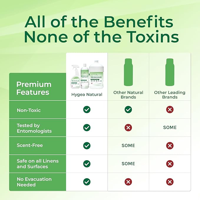 - Child & pet friendly: The unique Formula powerfully exterminates bed bugs & pests. This bed bug spray is ok to use in households with pets & children. Hygea Natural ExterminatorⓇ is used by hospitals & hotels nationwide.