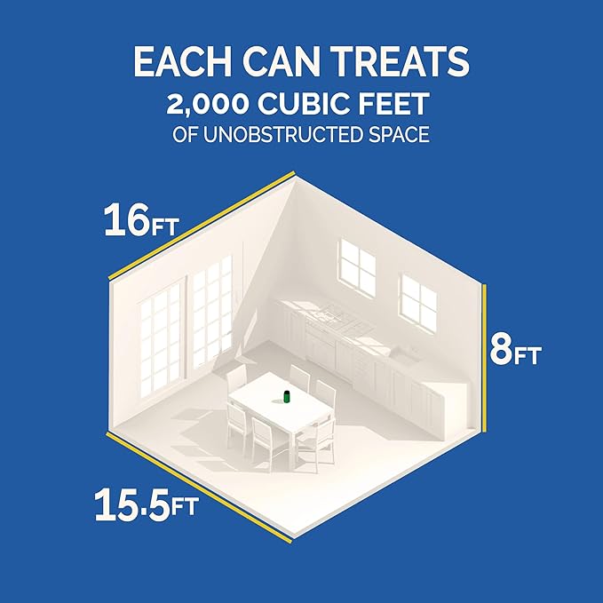 - EACH CAN COVERS 2,000 CU FT: Treats 2,000 cubic feet of unobstructed space (15.5 feet x 16 feet x 8-foot ceiling) β in rooms smaller than 5 feet x 5 feet, allow fog to enter from other rooms.