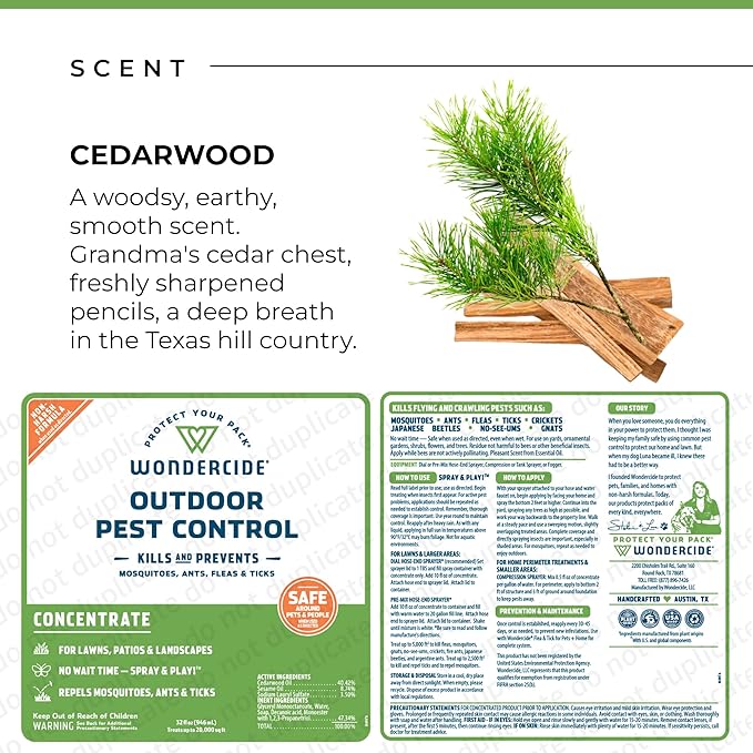 Wondercide - Outdoor Pest Control Spray Concentrate with Natural Essential Oils - Mosquito, Ant, Roach, and Insect Killer, Treatment, and Repellent - Safe Around Pets, Plants, Kids - 32 oz