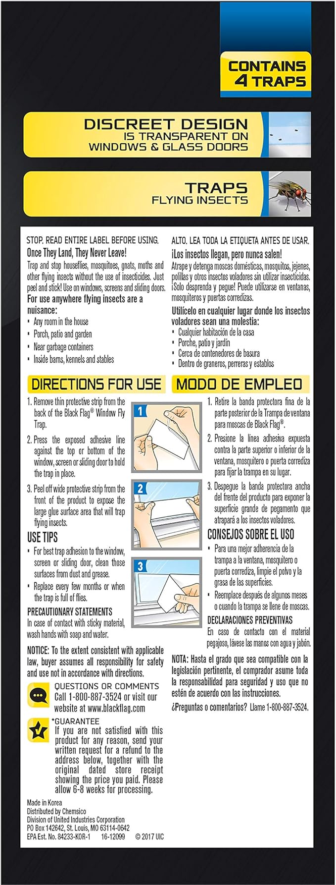 Black Flag Window Fly Trap, Transparent Glue Traps 4 Count