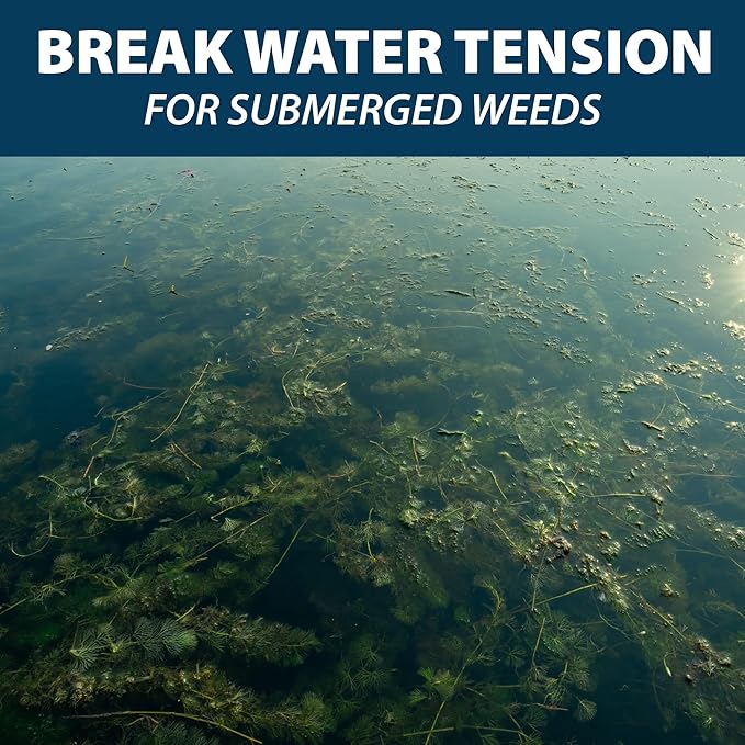 - Liquid Formula to Penetrate Weed Cuticle—The surfactant spreads and adheres to the target aquatic weeds and algae, breaking down the surface and penetrating the plant's thick, waxy coating.
