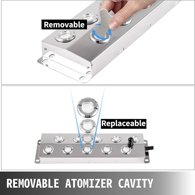 - Wide Application: This 10-head ultrasonic mist maker can be used in many horticultural applications. Like propagation, foliar feeding, grow room and greenhouse humidity generation, etc. You can put the fountain atomizer in your pond, rockery, fish tank, vase, tank, etc.