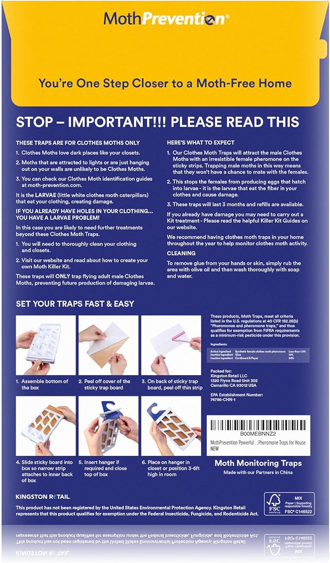 - LARGEST, FASTEST WORKING MOTH TRAPS – READY IN SECONDS: Simply open, peel, and fold - premium pheromones do the rest, magnetizing every moth away from your valuables and into your clothes moth trap - easy as 1, 2, 3!
