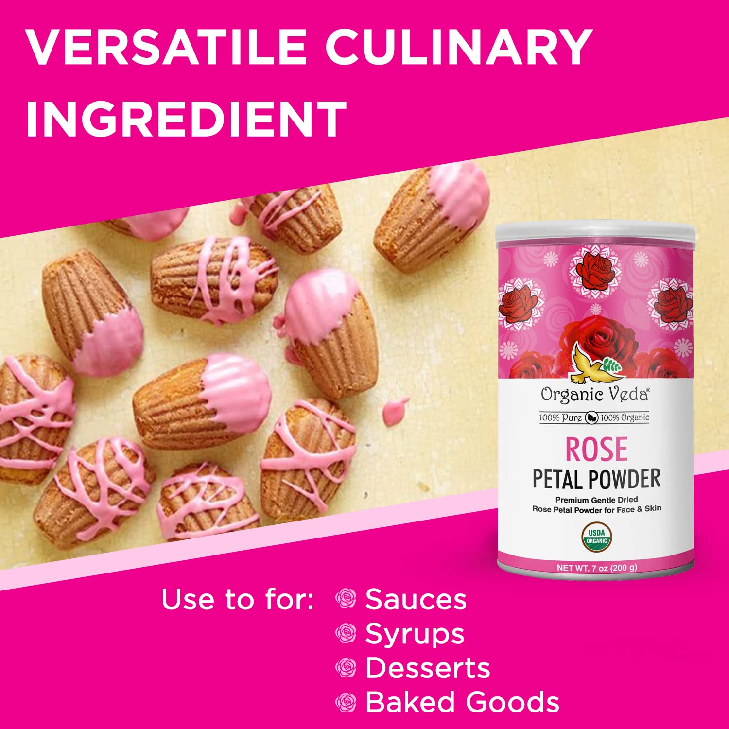 - Organic & Authentic: This edible rose powder uses food-grade petals, which are 100% raw, pure, & organically grown in India. organic rose powder is non-GMO, vegan, gluten-free, and does not contain any harmful artificial ingredients like colorings or additives