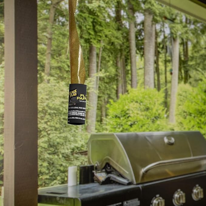 Black Flag Fly Paper, Insect Trap, Catches All Flying Insects 4 Traps (Pack of 12)