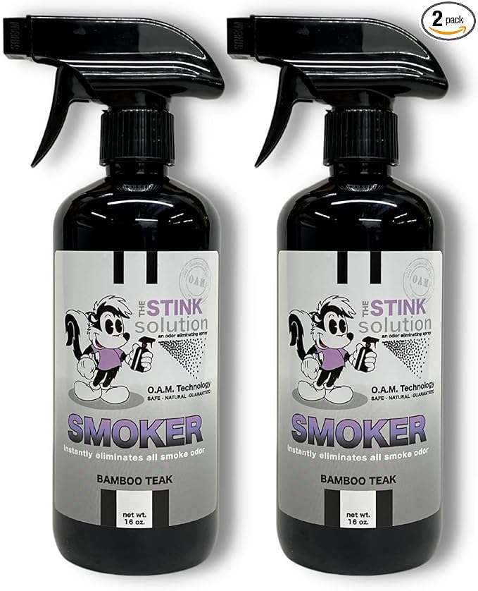 Smoke Odor Eliminator Spray - Completely Remove Smoke Smell From House, Car, Clothes, Hands, Hair, & More - Best Odor Eliminator For Smoke - Bamboo Teak Fragrance - 2 16 oz Bottles
