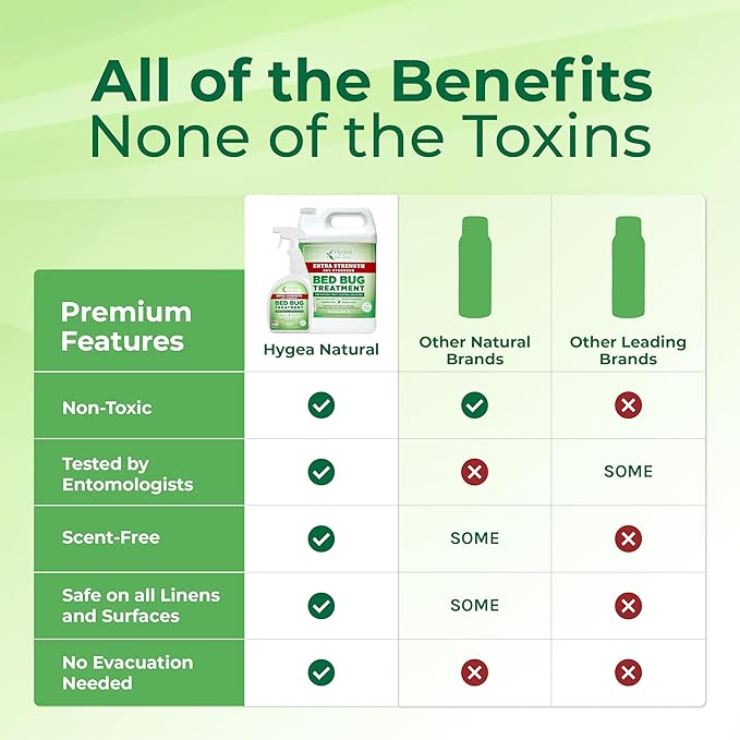 - Odorless & stain-free: Hygea Natural's unique formula can be used on any water-friendly surface including upholstery, mattresses, bed linens, clothing, floors, walls, etc. Spray a light mist of the portable bed bug spray. It wonโt leave a residue.