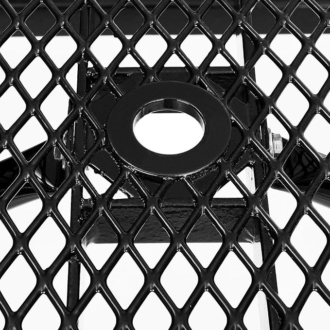 - BUILT TO LAST: Industrial-strength expanded metal mesh seats & tabletop reduces weight without sacrificing strength or durability; Promotes air flow, prevents snow or dust accumulation and limits standing water; Heavy-duty tubular steel frame with integrated anchor tabs is finished in a black powder coat