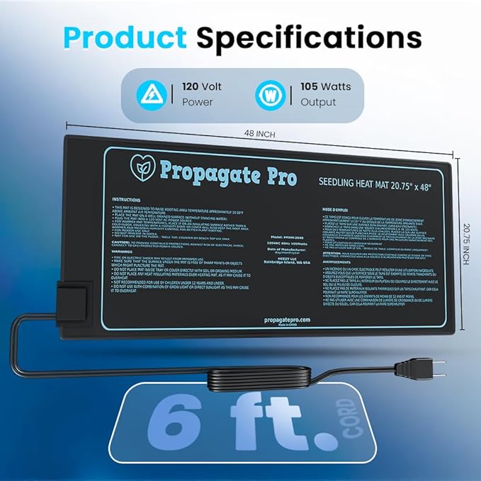 4' Foot Seedling Heating Mat | Fits (4) Standard 1020 Tray | 48" inch Germination Grow Heat Pad for Seed & Starter Plants Soil Warmer for Indoor Home Gardening (20x48 Single)