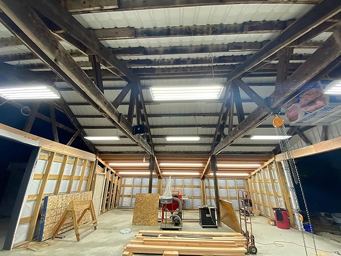 4 Lamp Bulb High Bay T8 LED HighBay Utility Shop Garage Warehouse Light Fixture 11,000 LUMENS! Commercial Grade 15" X 48" White W/Mirrored Reflector W/LED Tubes 11,000 Lumens Bright