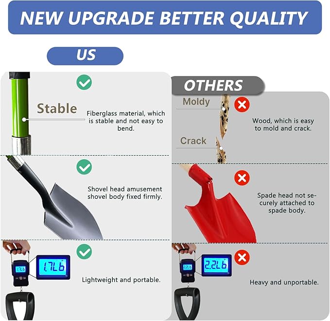 - 【Audult Shovels】: An Enlarged Shovel Head can more Soil or Compost Speed Work, But the Shovel Tip is Smooth without Sharp burr, Don't Worry about Getting Hurt. Snow can be Removed from Under Tires in Winter, Ideal for Excavation Work, Such as Planting, Transplanting, Tilling the Soil, etc.