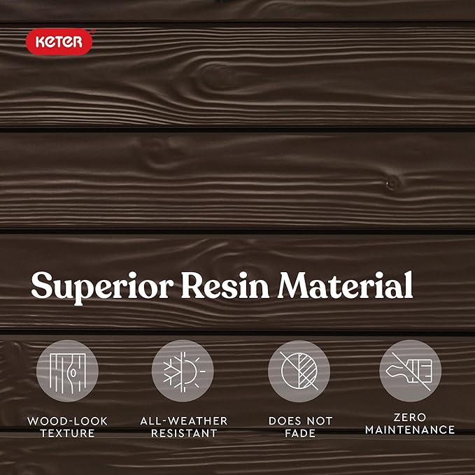 - ALL-WEATHER-RESISTANT: The all-weather-resistant materials make this low-maintenance patio storage easy to use and enjoy for years to come. Unlike real wood, the thick exterior resin prevents rusting, peeling, and denting.