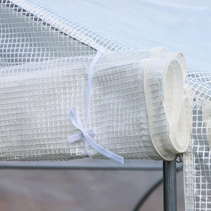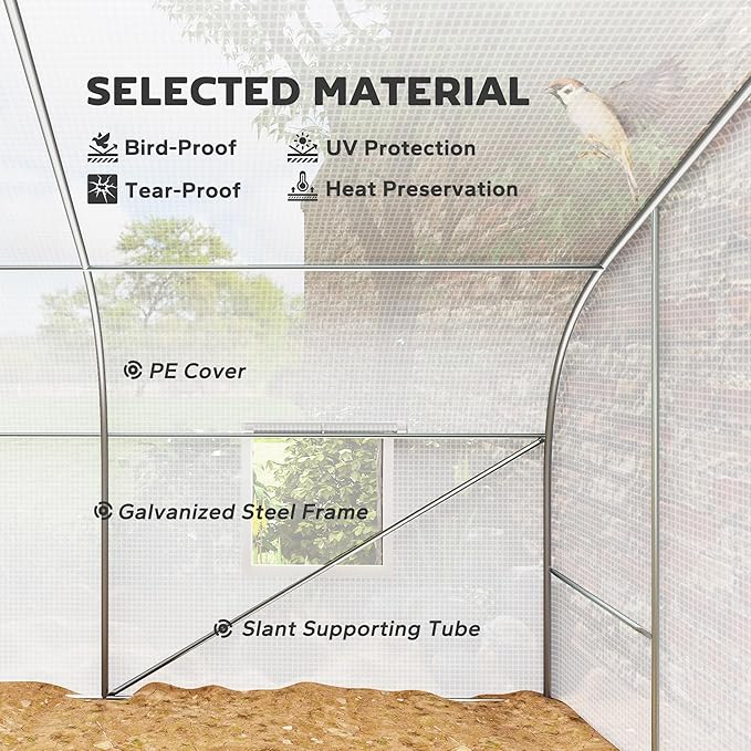- Heavy-Duty Steel Frame: Our outside greenhouse features a chip-resistant galvanized steel frame with seven rows of reinforcing tubes, a crossbar, and four slant bracing tubes, each featuring a 0.94" thick diameter. Note: Please remove the cover in case of heavy snow, strong wind, and heavy rain.