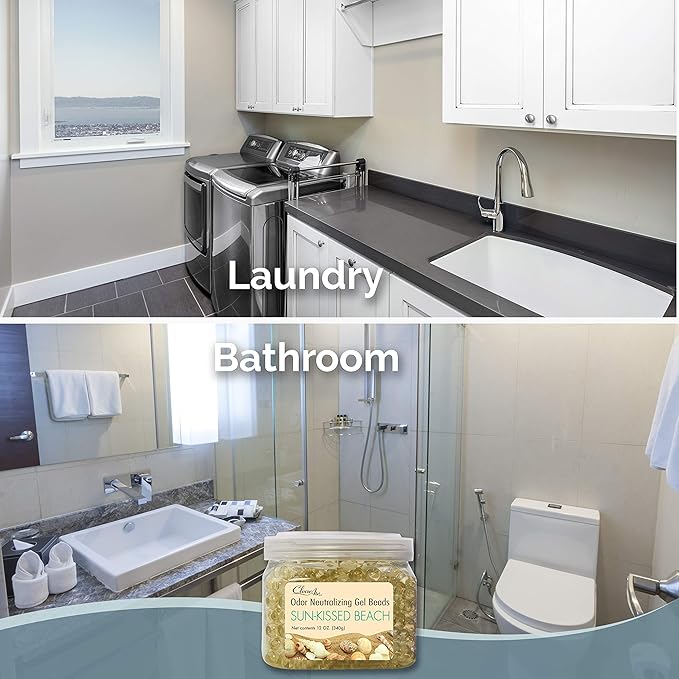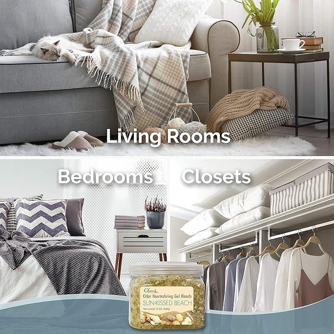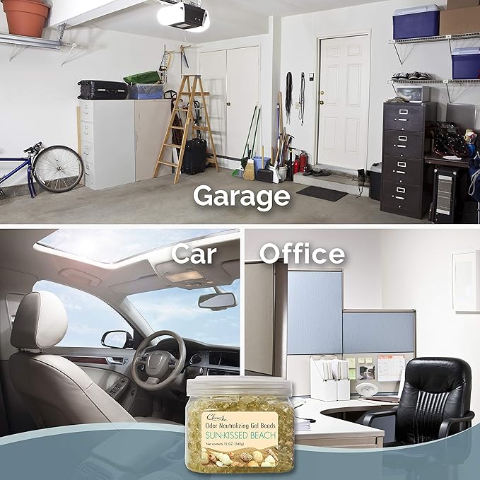 Clear Air Odor Eliminator Gel Beads - 12 oz, Pack of 2 - Air Freshener Made with Essential Oils - Eliminates Odors in Bathrooms, Cars, Boats, RVs & Pet Areas - Sun-Kissed Beach Scent