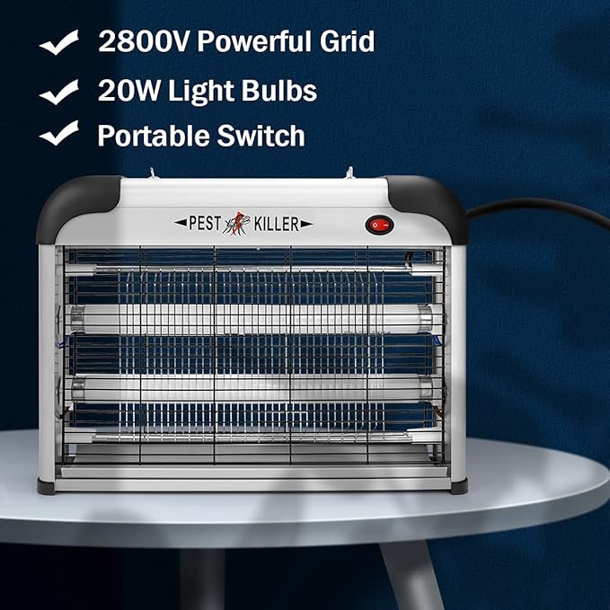 - 2800V Electric Grid: This pest killer is designed to be the strongest with 2800V indoor transformer. It will generally explode smaller insects on impact, wiping out all harmful biting insect with 6,000 sq.feet effective coverage. Save your money and reducing your need to clean the grid.