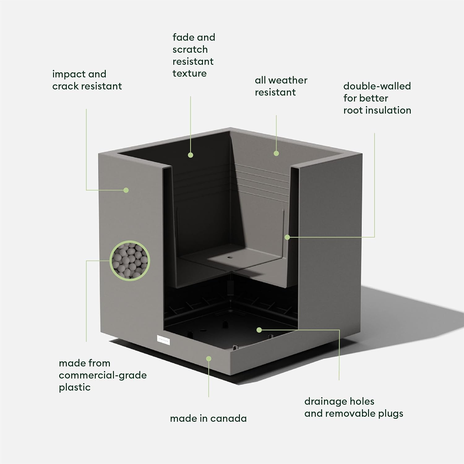 Veradek Block Series Cube Plastic Planter - Large Square Planter for Indoor or Outdoor Patio/Garden | Durable All-Weather Use with Drainage Holes | Modern Décor for Tall Plants, Trees, Flowers