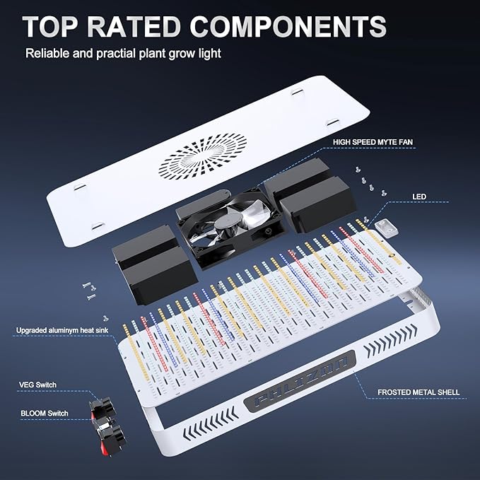 - FULL SPECTRUM- We did lots of experiments to ensure that this full spectrum promotes plant growth. It includes universal 660nm 460nm 6500K 3000K blue red leds which can provide everything plant desired in the natural sunlight.