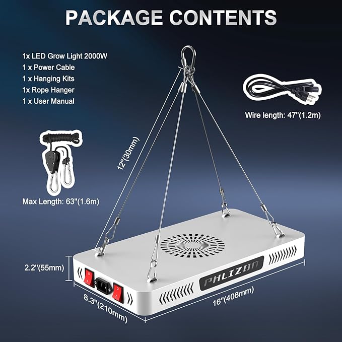 Phlizon pro2000W High Power Led Grow Light with High Yield Diodes Full Spectrum LED Grow Lights for Indoor Plants Greenhouse Veg Bloom Light Hydroponic Grow Lamp