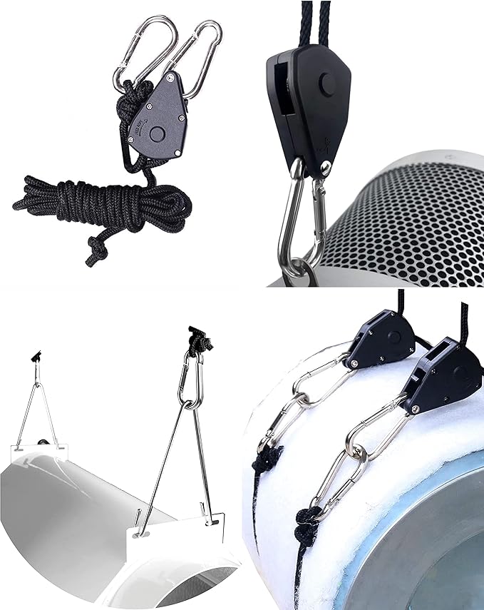 2 Pair of 1/8 inch Adjustable Rope Hanger Heavy Duty for Grow Light Rope Hangers Loose-Proof Design Light Fixture Hangers (4 Pcs)