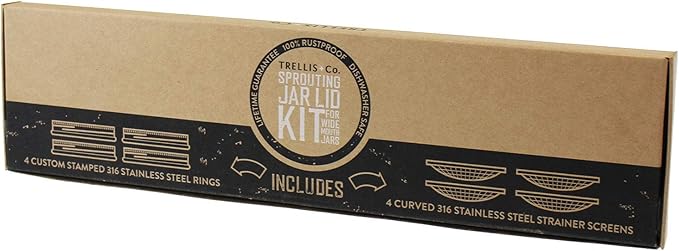 - INCLUDES: 4 x Wide Mouth Stainless Steel Rings; 4 x Heavy Duty Stainless Steel Curved Strainer Screens; 2 x Sprouting Stands; Gift Box; and Free Downloadable Sprouting Guide. 100% Satisfaction Guaranteed.